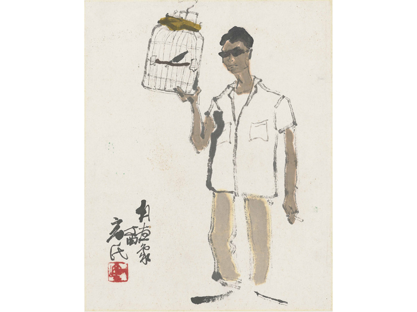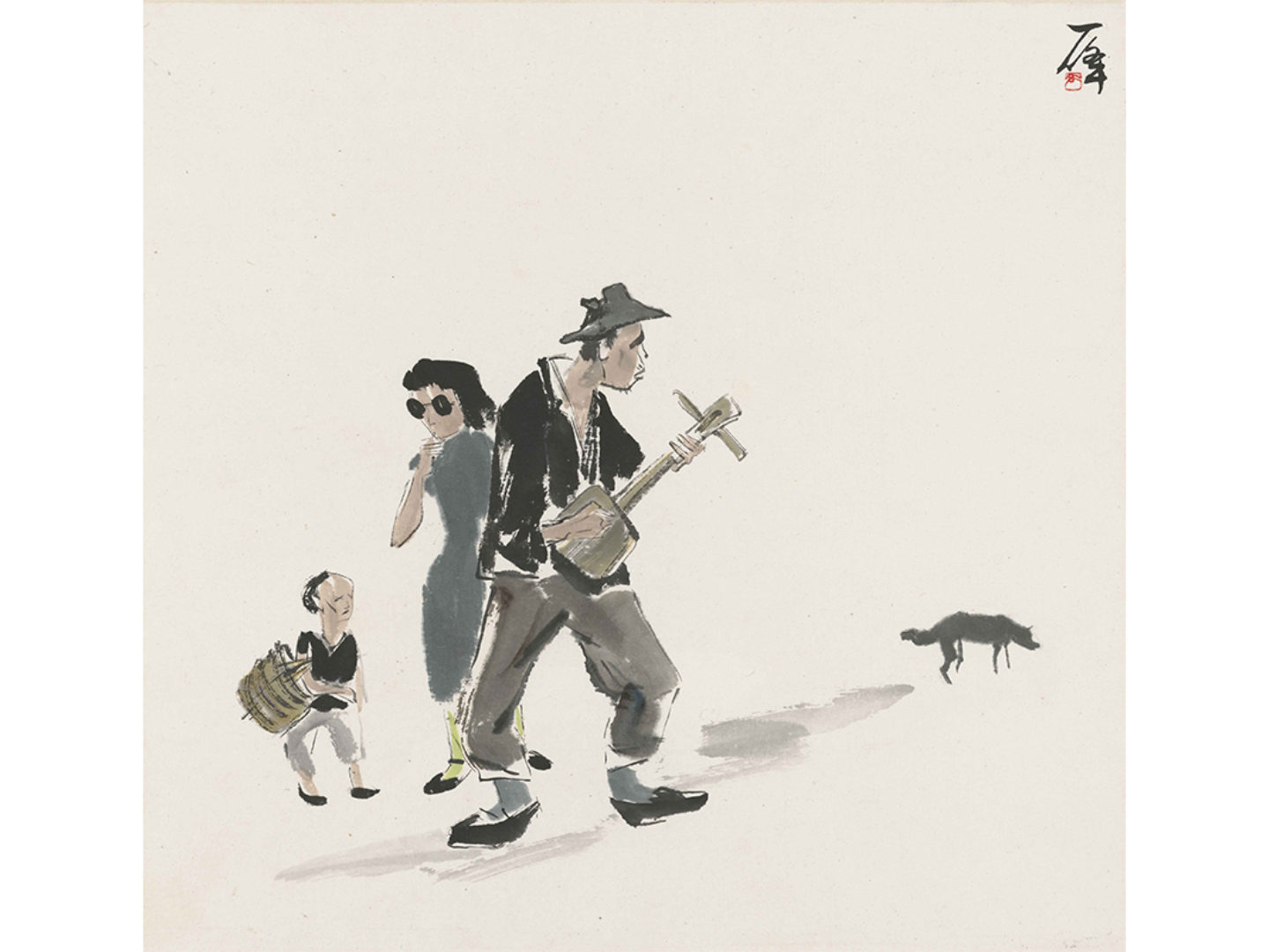賣唱者(一) 1955-1956 水墨設色、紙 44x46cm 創價美術館典藏