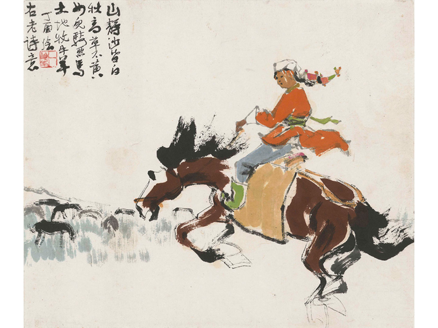 蒙古牧女:山靜沙白 1957 水墨設色、紙 33x39cm 創價美術館典藏