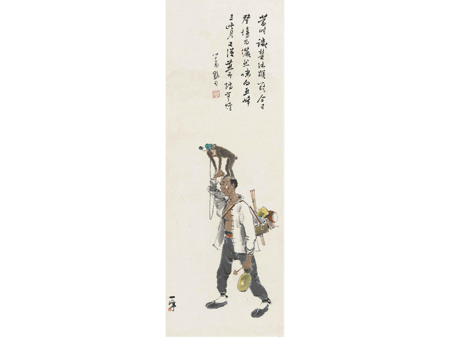 藝人 1956-1957 水墨設色、紙 98x35cm 創價美術館典藏